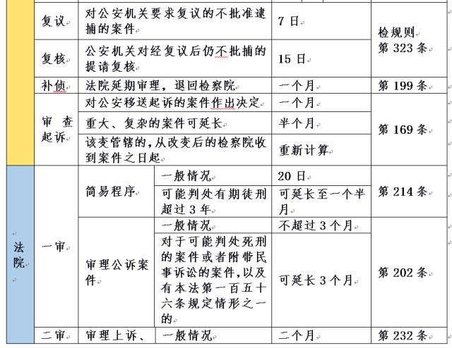 公检法办理刑事案件期限一览表(2017年最新整理)