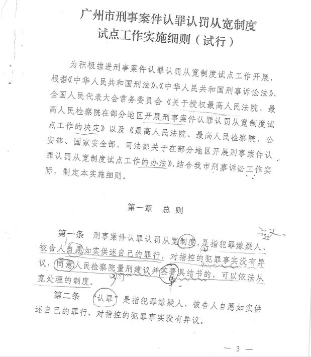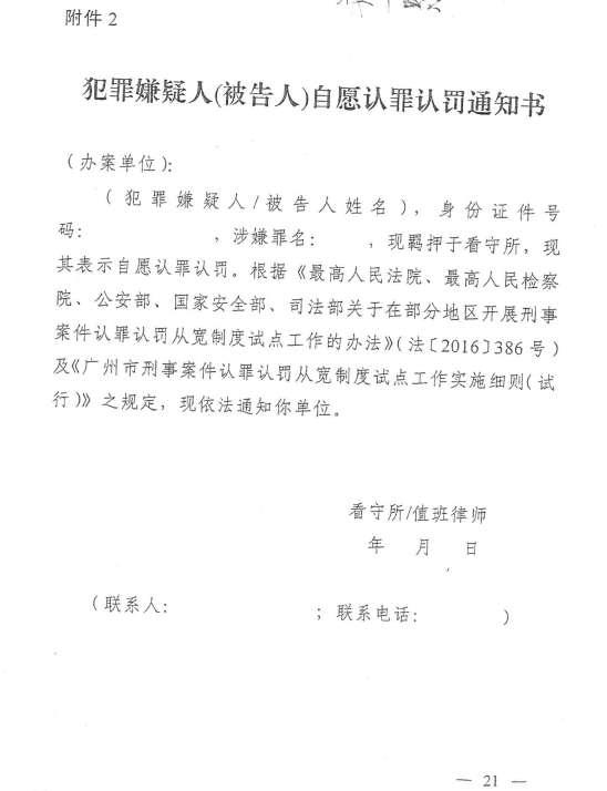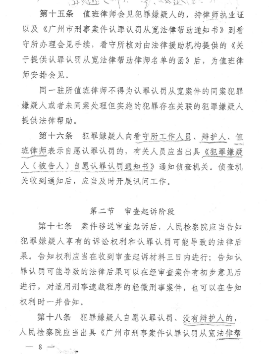 广州市刑事案件认罪认罚从宽制度试点工作实施细则(试行)