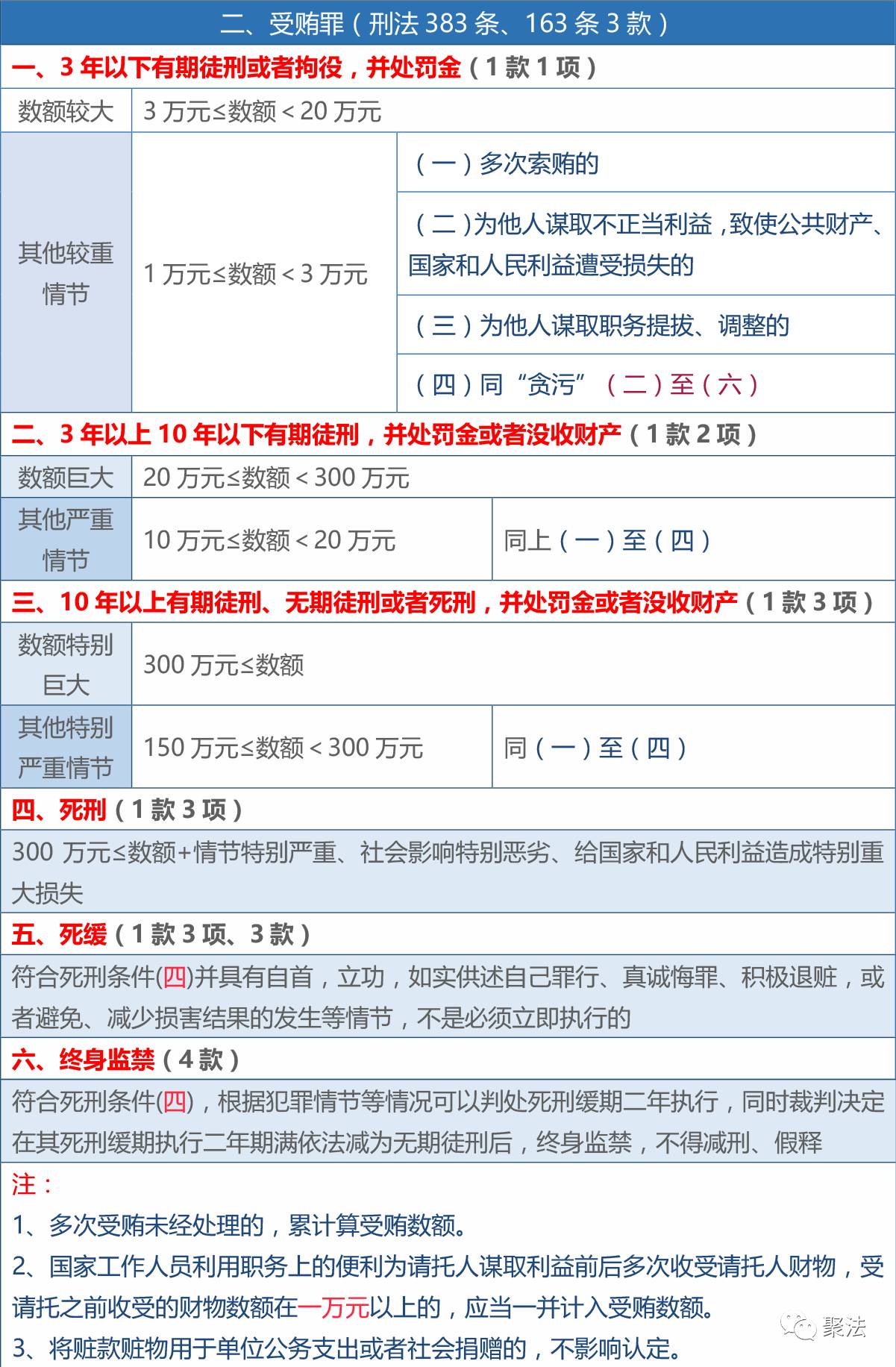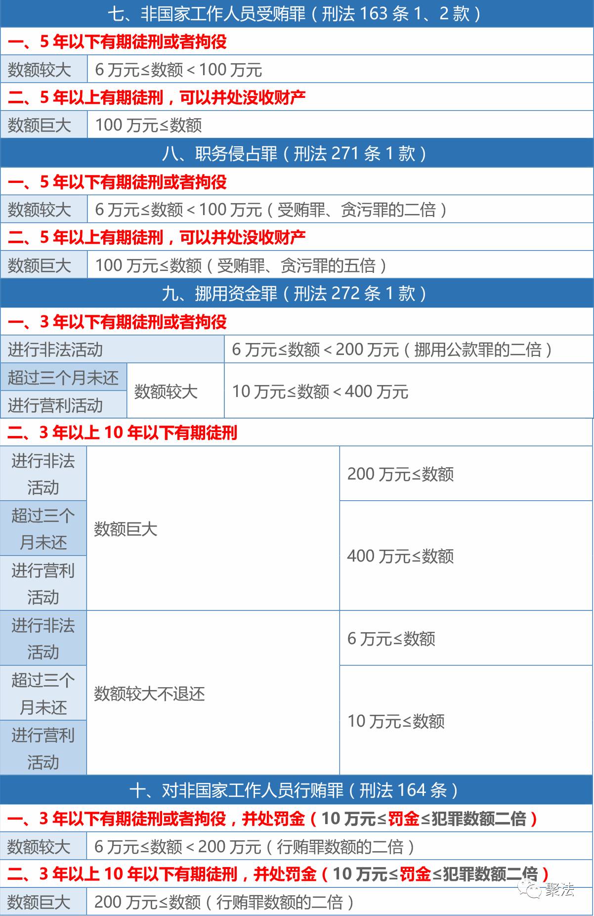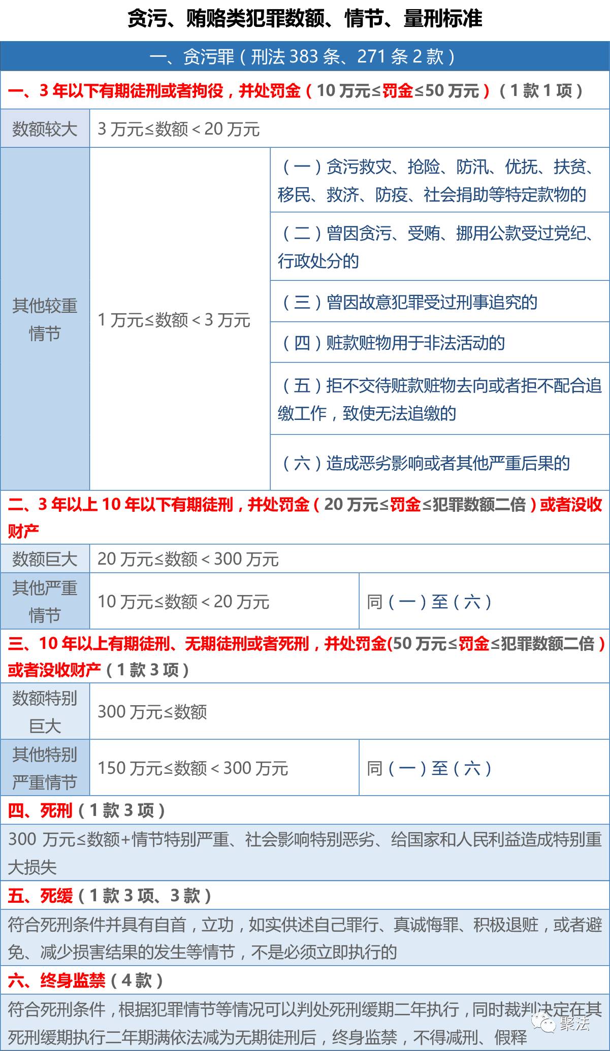 贪污贿赂类犯罪数额、情节、量刑标准一览表