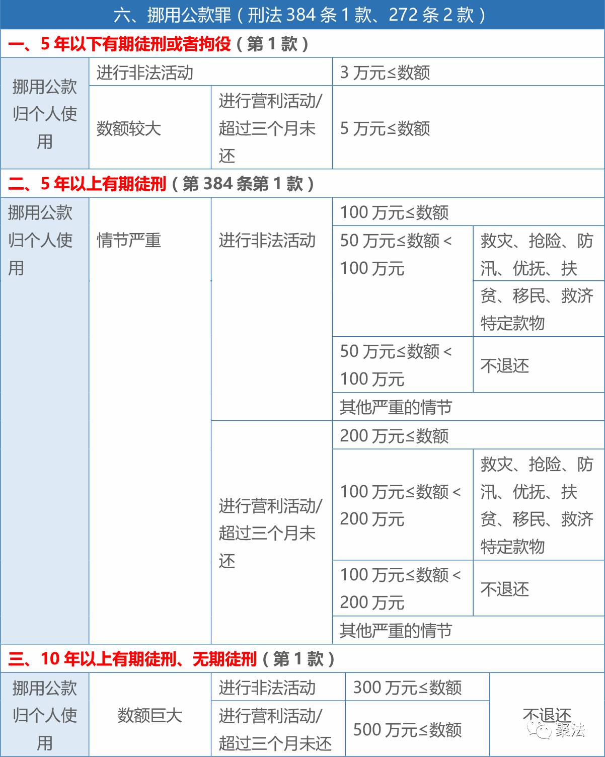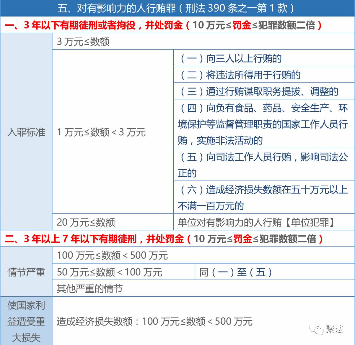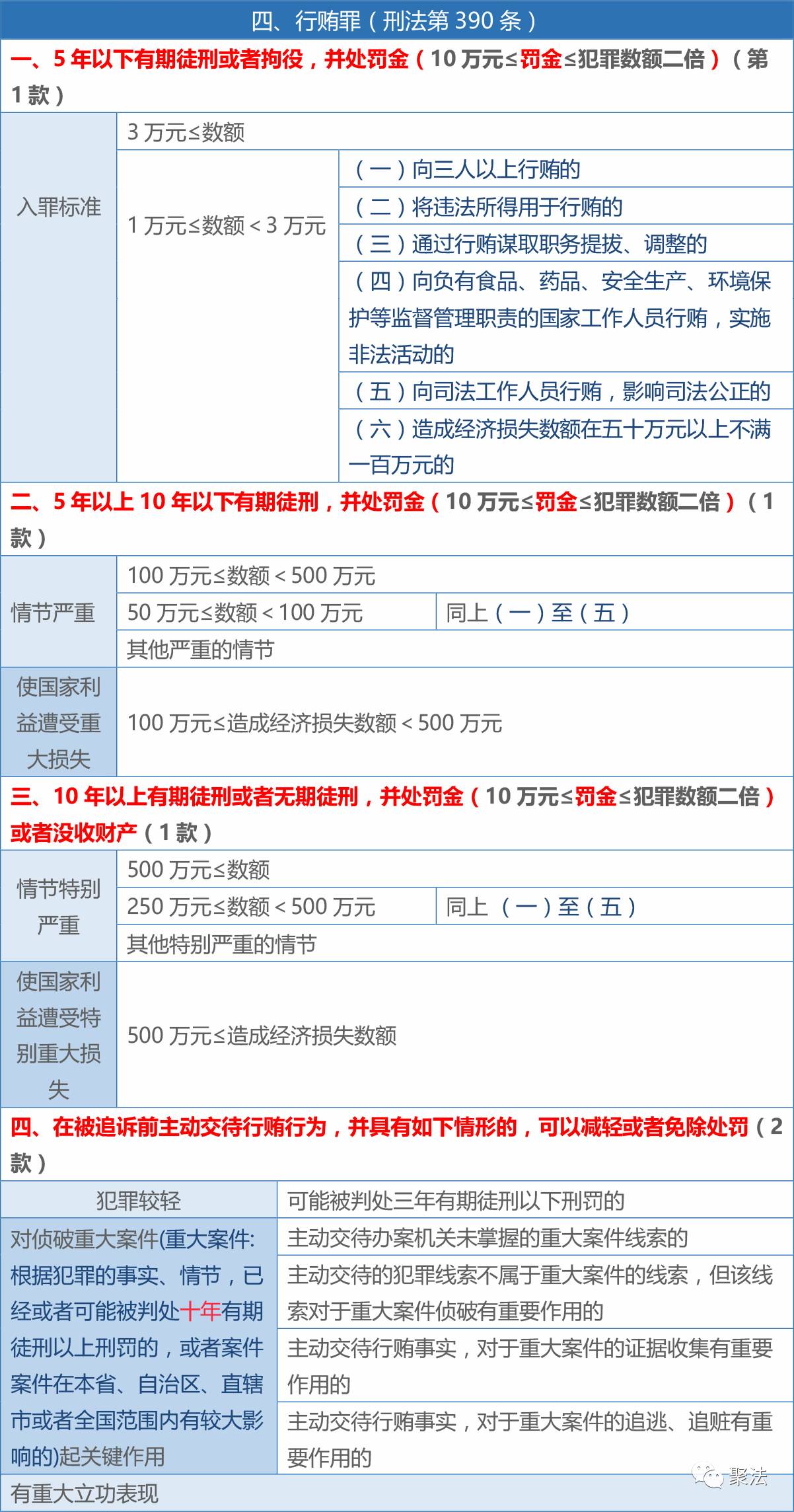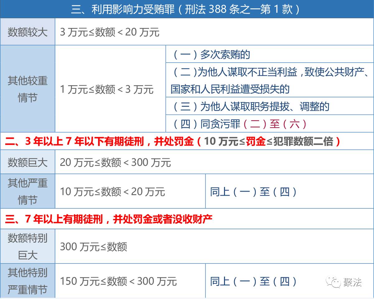 贪污贿赂类犯罪数额、情节、量刑标准一览表