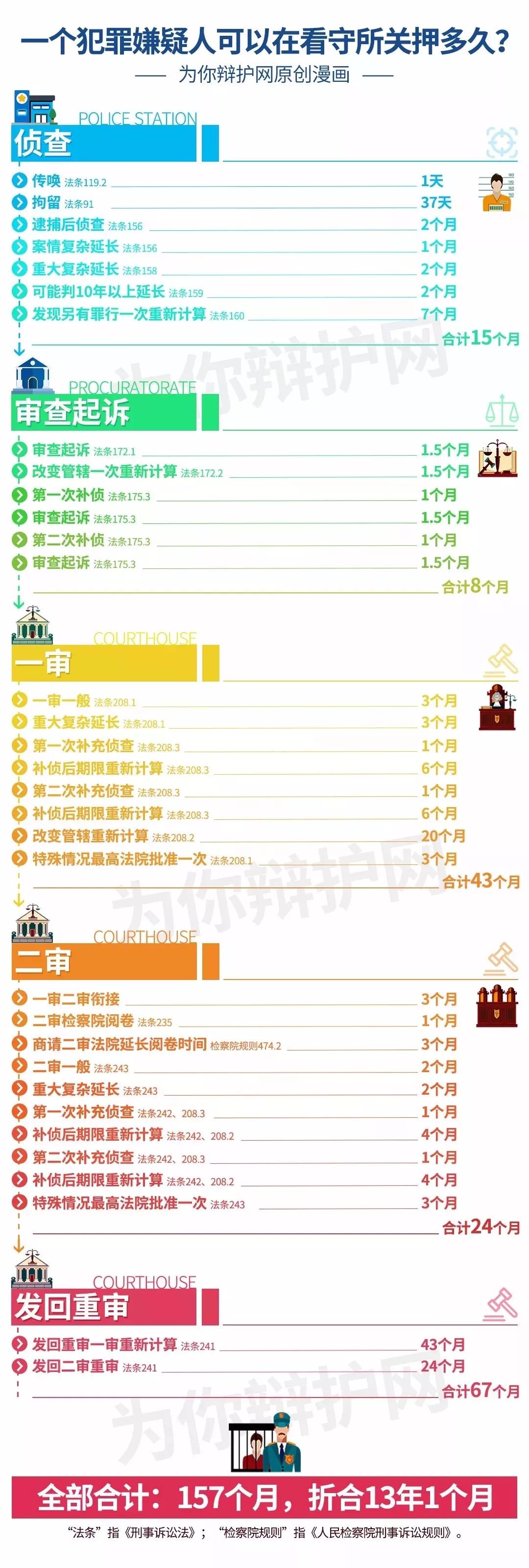 一张图告诉你犯罪嫌疑人在看守所可以被关押多久